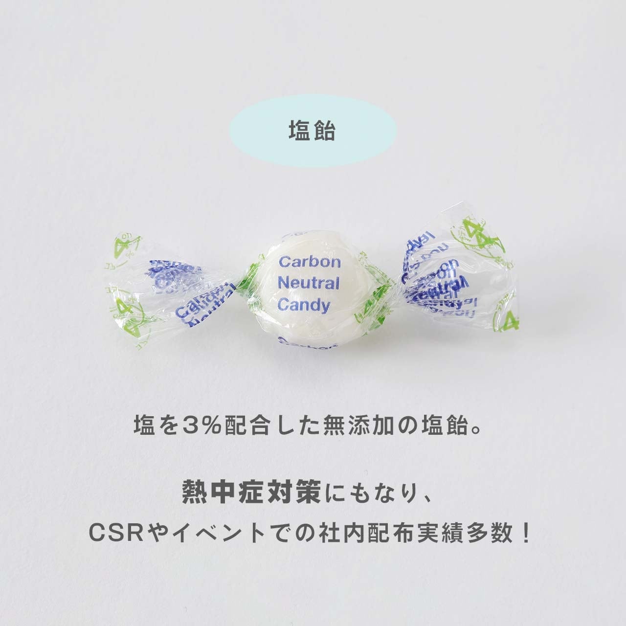 用途や配布シーンに合わせてお選びいただける、新しい「環境配慮型キャンディ(CO₂削減飴)」です。